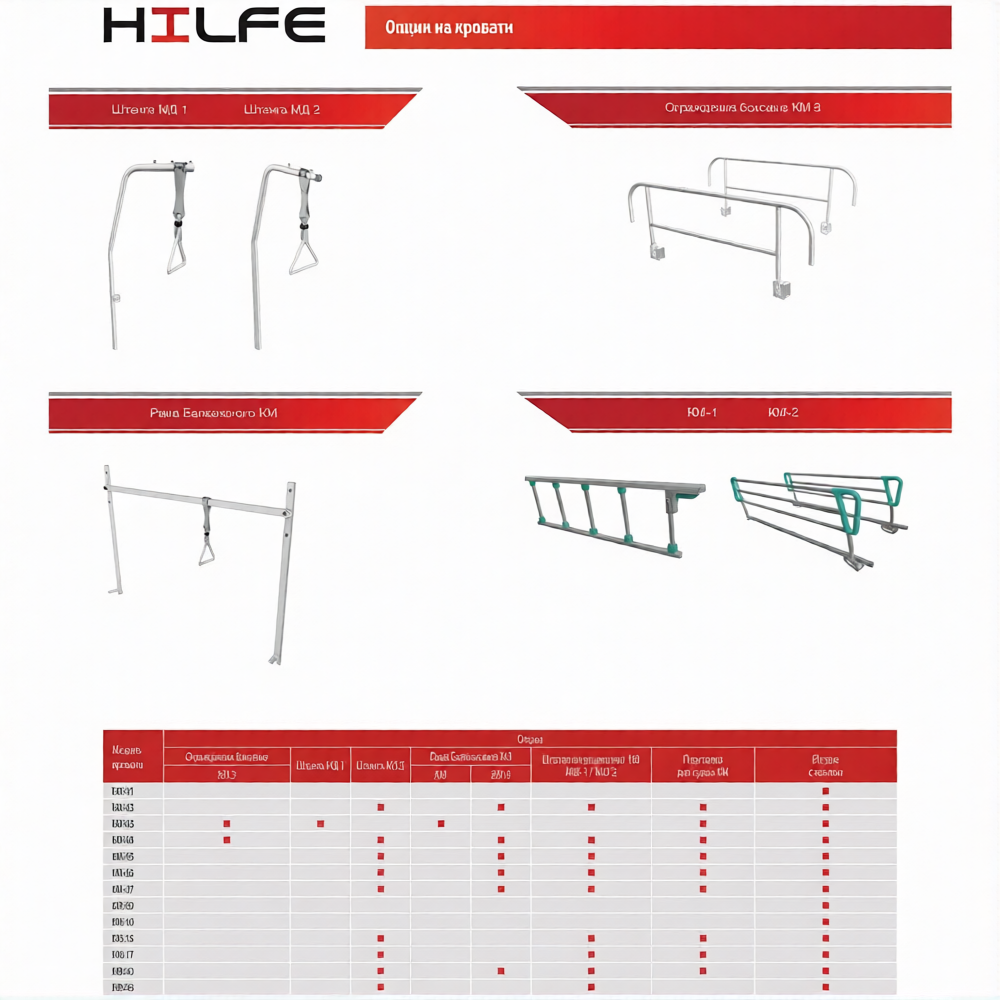• четырехсекционное металлическое реечное ложе регулируется с помощью электроприводов, каркас изготовлен из профильной трубы прямоугольного сечения, покрыта эпоксидно-порошковой краской;