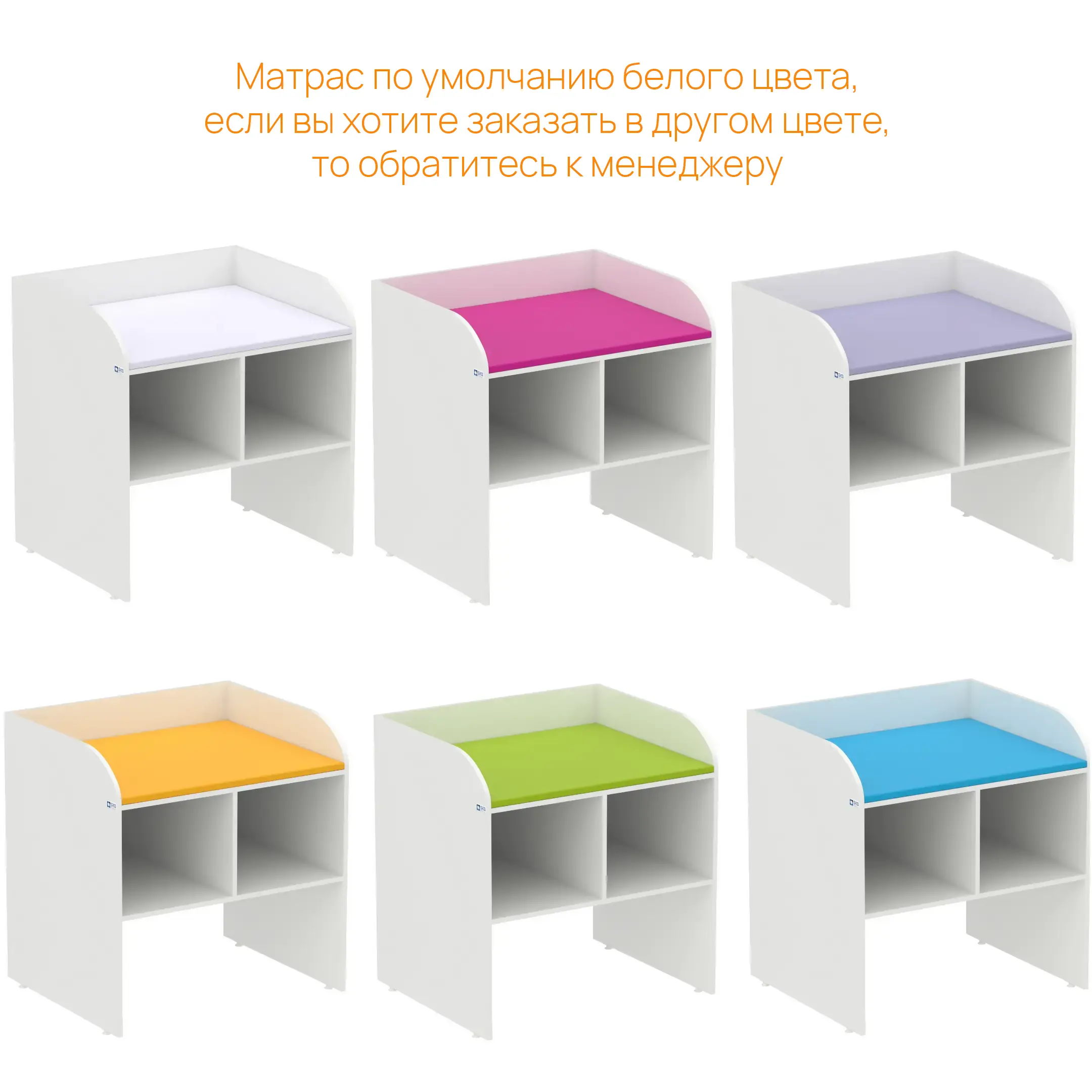 - Комплектация мягким матрасом — матрас белого цвета входит в стандартную комплектацию (по запросу доступны другие цвета).