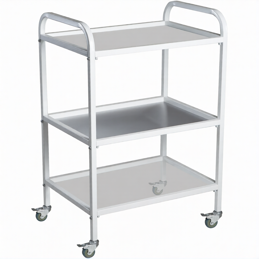 Столик медицинский инструментальный СМИ-03 (полки металл, колёса серая резина)