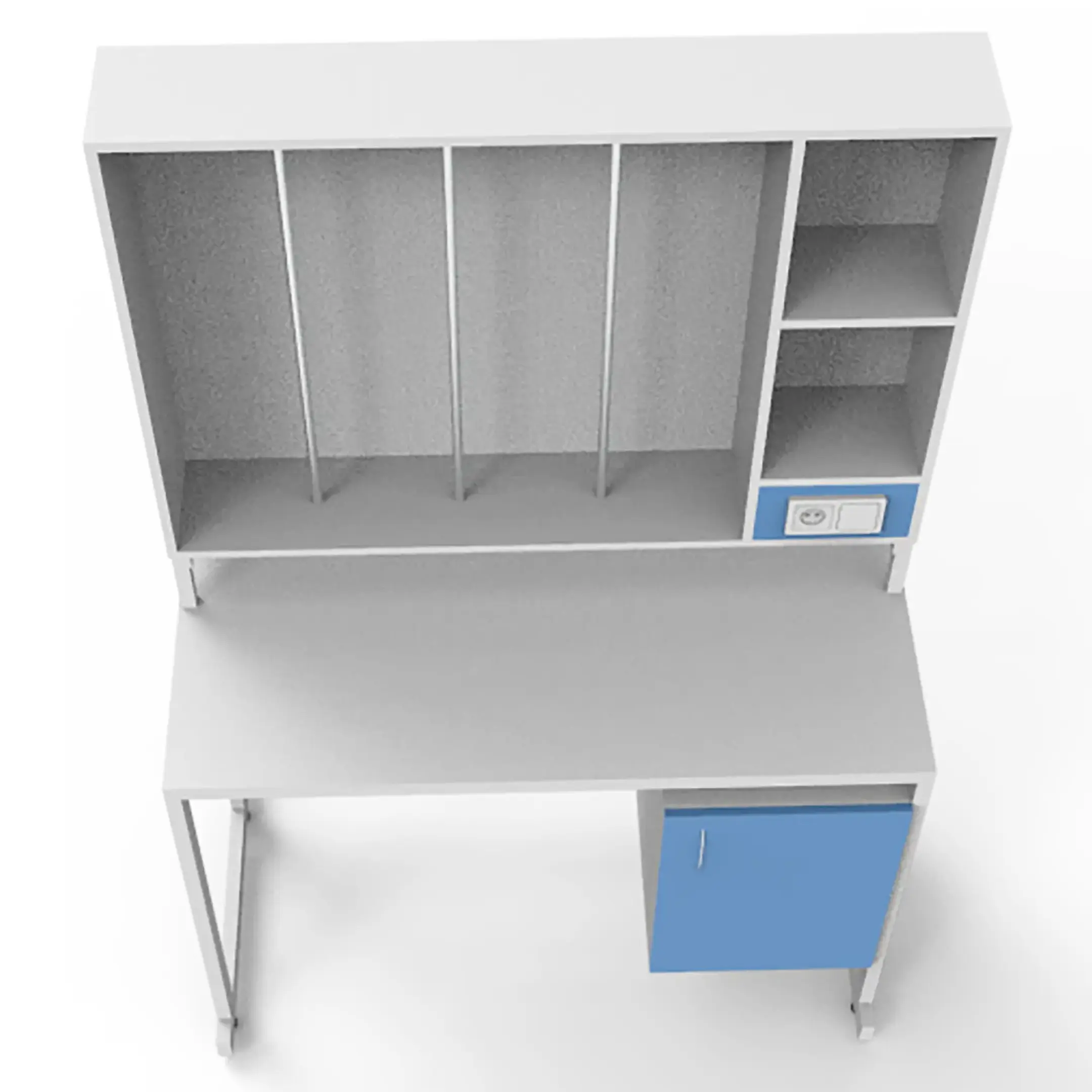 - Удобное хранение — тумба с дверцей для хранения необходимых предметов и образцов.