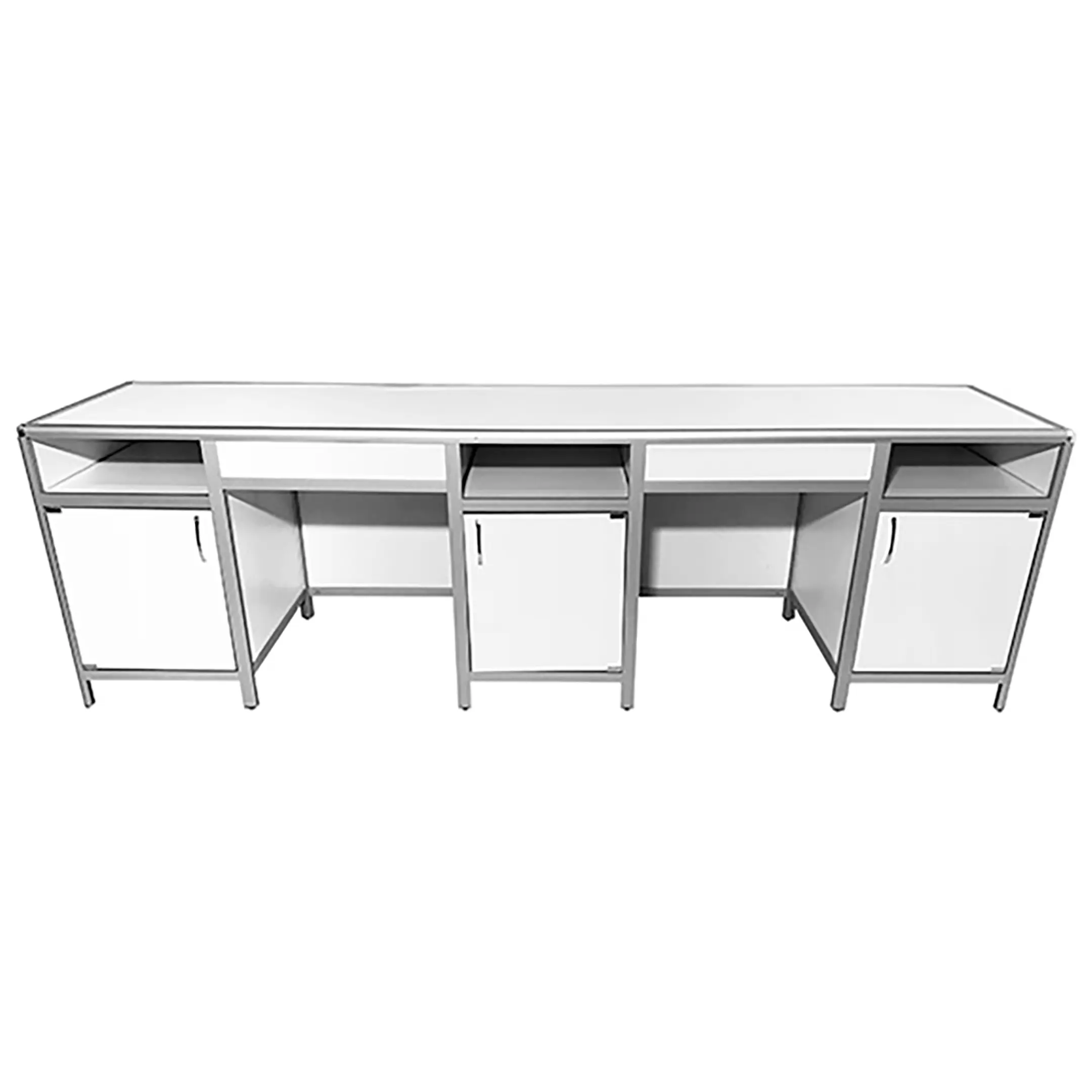 Стол лабораторный MED 10.012al (белый) представляет собой идеальное решение для создания эффективного и организованного рабочего пространства сотрудников лабораторий и медицинских учреждений. Модель оснащена тремя тумбами, каждая с верхней открытой нишей, отделением с распашной дверкой и полкой. Каркас выполнен из алюминиевого профиля, столешница из ЛДСП толщиной 16 мм.