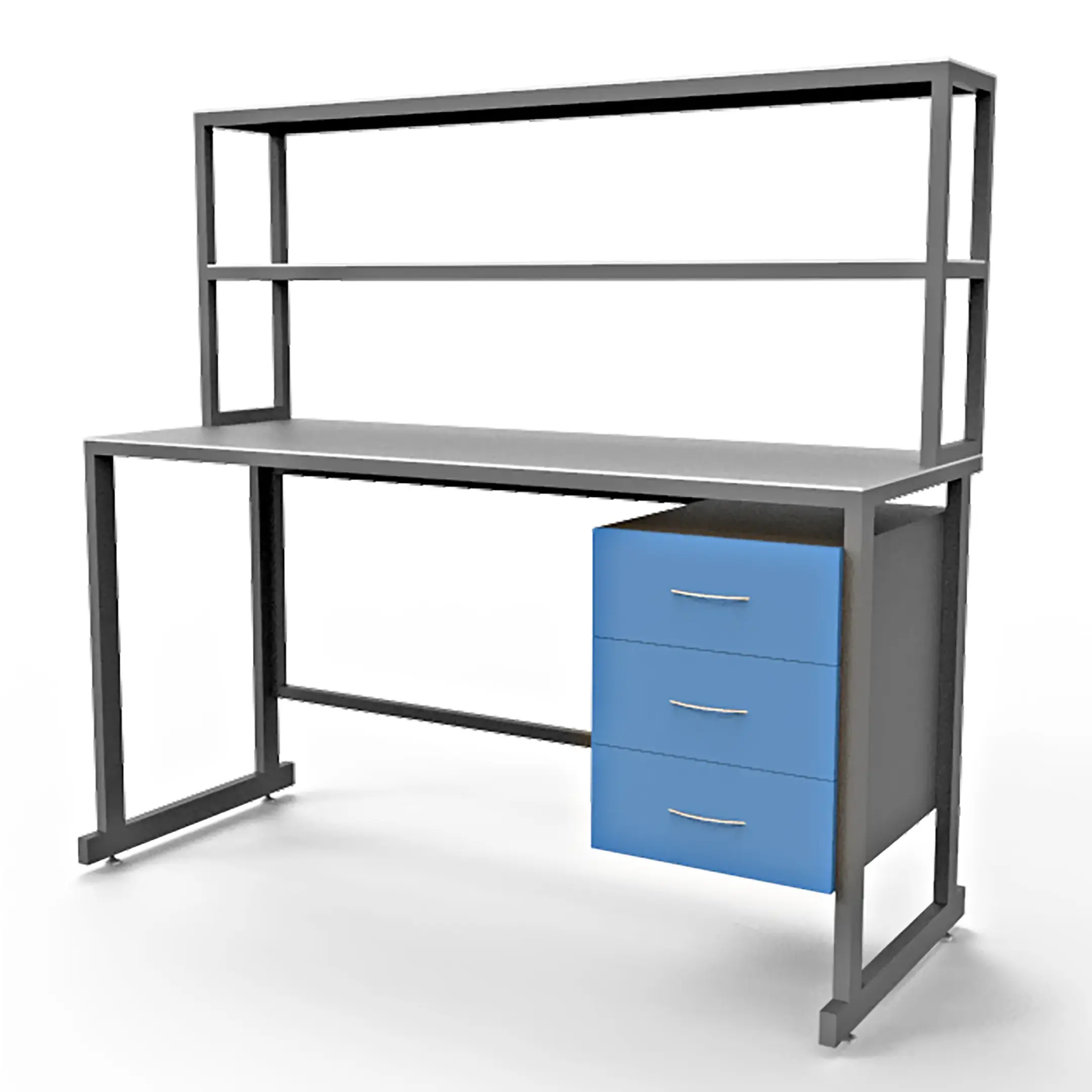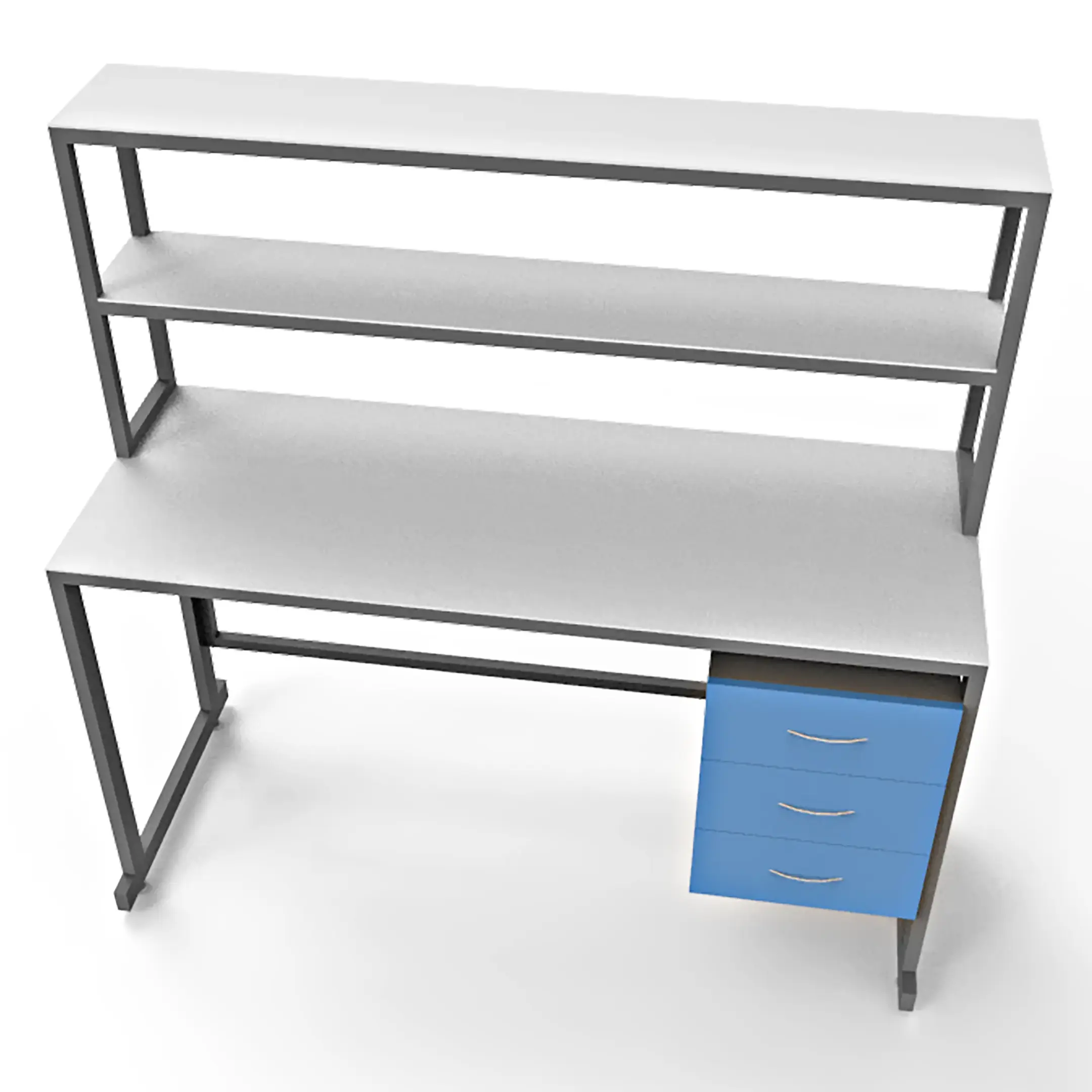 - Функциональная надстройка — две полки для дополнительного размещения оборудования, общая высота стола с надстройкой 1600 мм.