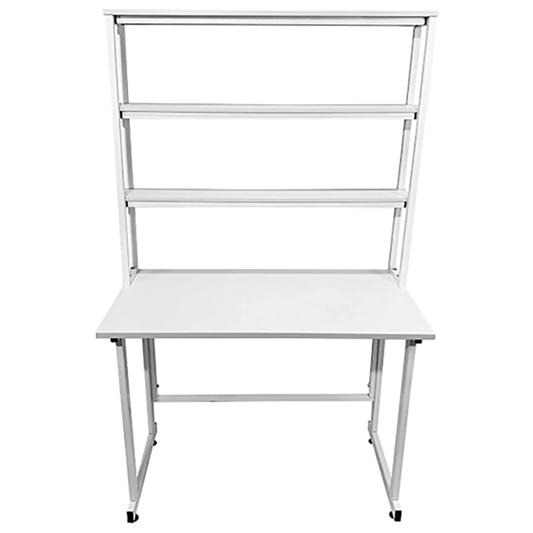 - Функциональная надстройка — три полки из ЛДСП 16 мм для дополнительного хранения материалов и инструментов, нагрузка до 10 кг на каждую полку.