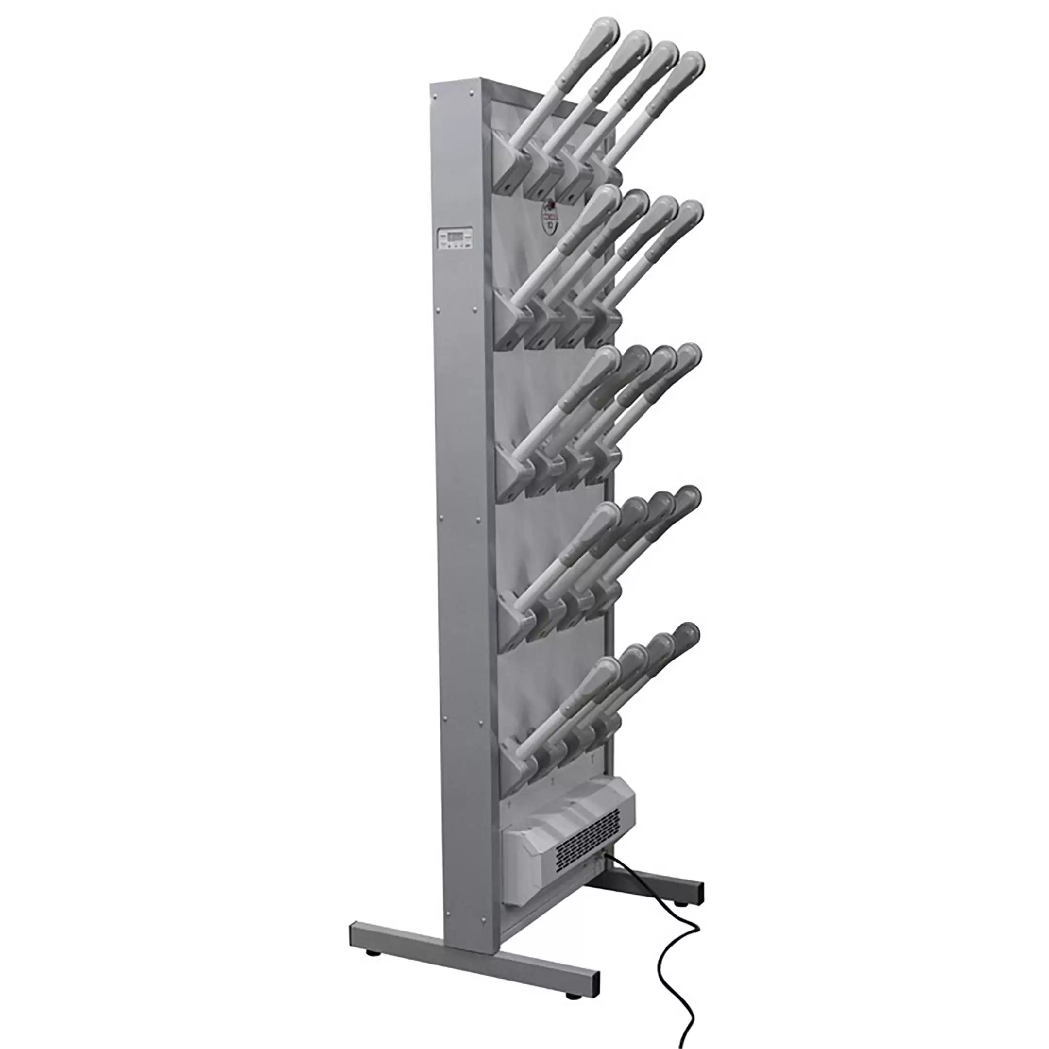 - Компактность и мобильность — комплект с подставкой представляет собой автономное решение, не требующее сложного монтажа. Его можно легко установить в любом удобном месте раздевалки, коридора или подсобного помещения и при необходимости переместить.
