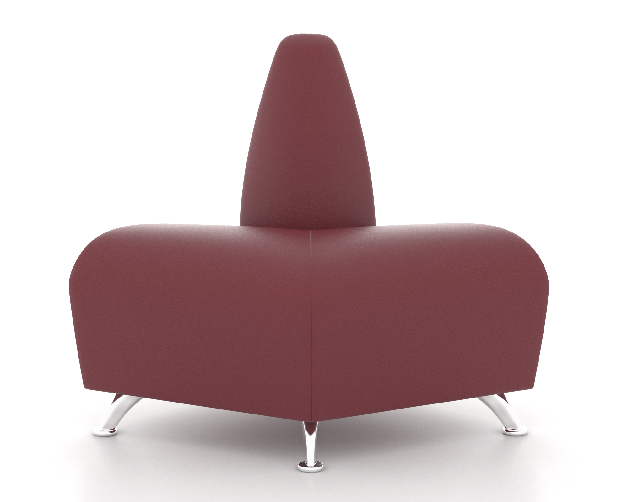 Угловая форма конструкции позволяет рационально использовать площадь помещения, обеспечивая дополнительную зону отдыха или рабочую площадку. Материалы хромированного цвета добавляют помещению современности и стильности, гармонируя практически с любыми типами интерьеров. Наружный модуль оснащен мягкими вставками, способствующими созданию атмосферы комфорта и удобства для посетителей.