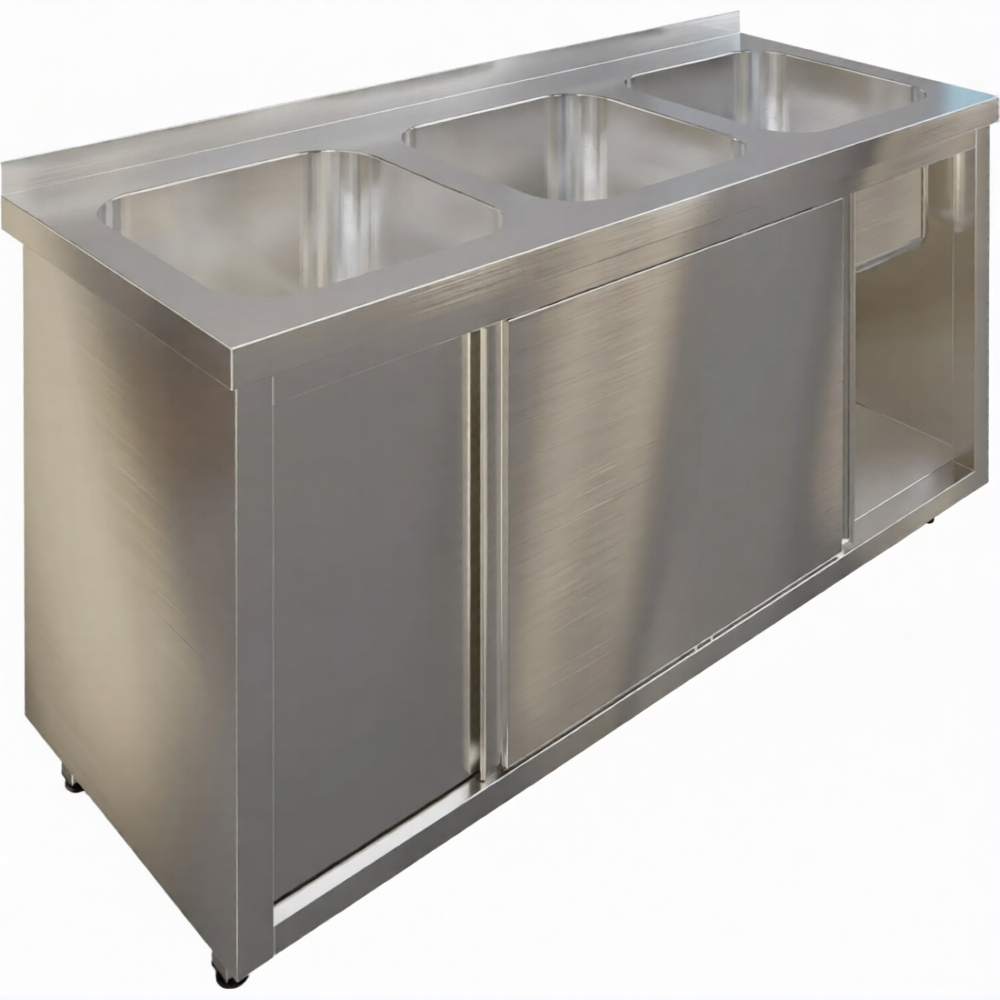 Стол производственный купе СПЗК3М-16/7-Б с моечной ванной и бортом предназначен для применения в моечных отделениях предприятий общепита и торговли различного формата, пищевых производств и пищеблоков для мытья посуды, кухонного инвентаря, продуктов питания и рук персонала. Также позволяет временно разместить кухонный инвентарь.