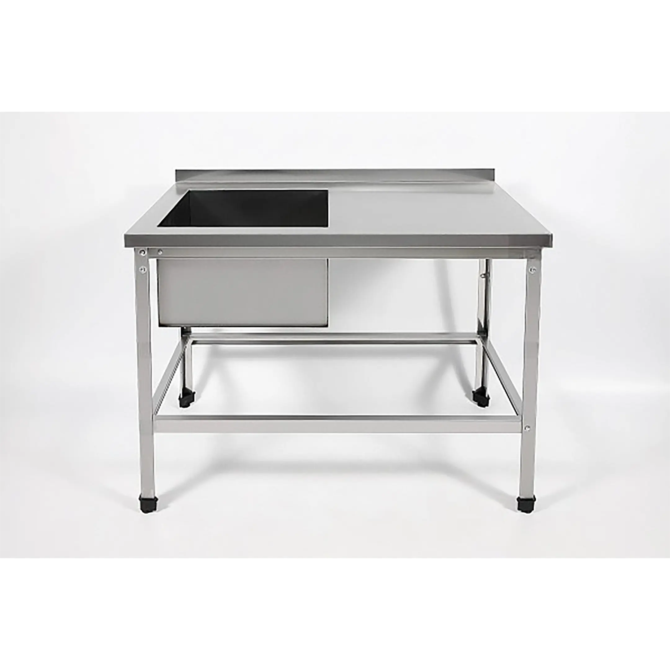 Ванна моечная сварная с рабочей поверхностью с бортом ВМСР/1-11/7-БЛО-ЭН разработана для применения в моечных отделениях предприятий общепита и торговли различного формата, пищевых производств и пищеблоков для мытья посуды, кухонного инвентаря, продуктов питания и рук персонала.