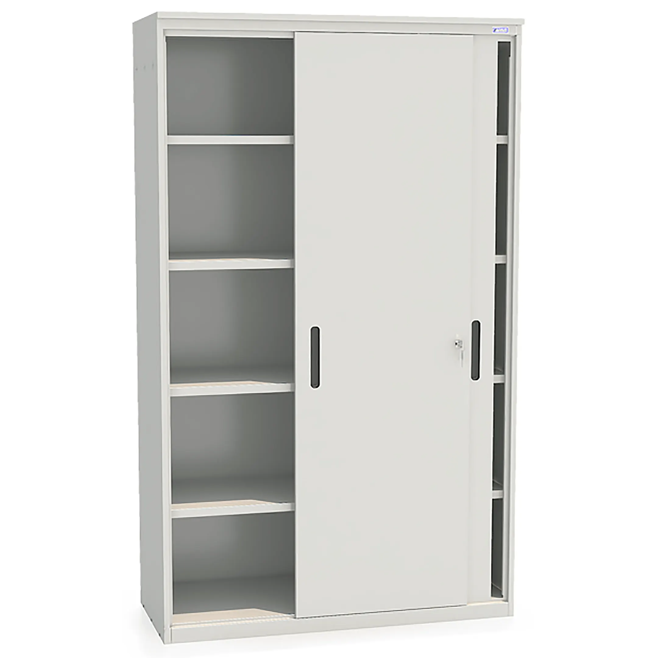 - Эргономичность и современный дизайн — система раздвижных дверей обеспечивает полный обзор и удобный доступ ко всем полкам. Лаконичный дизайн шкафа гармонично вписывается в обстановку современного офиса, кабинета или учебного помещения.