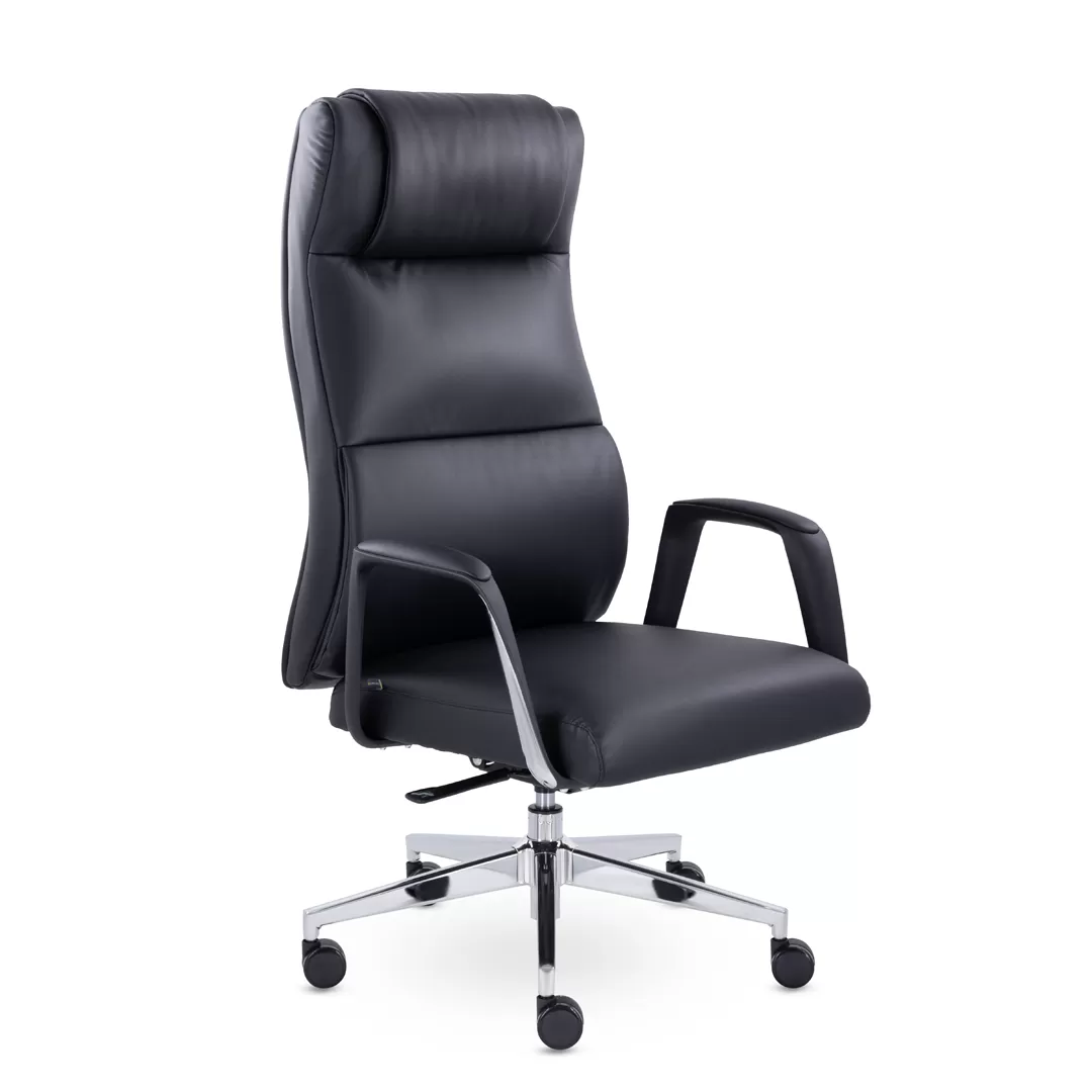 - Хромированные элементы — крестовина и детали декора придают креслу презентабельный вид и устойчивость.