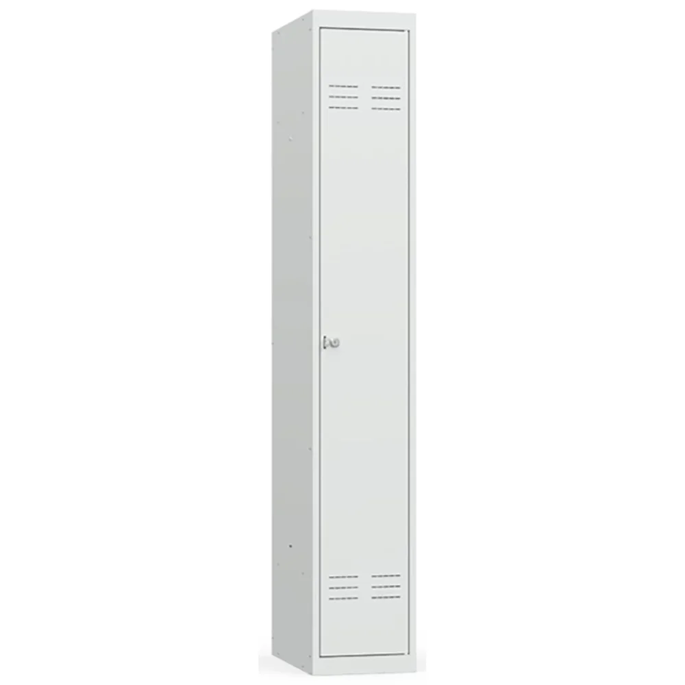 • Односекционный металлический шкаф для одежды имеет полную внутреннюю комплектацию: полку для головных уборов, пластиковые перекладины для вешалок и два крючка для одежды, проушина для навесных замков;