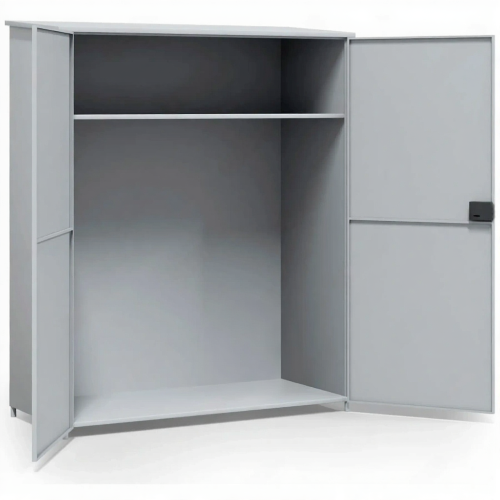- Промышленная вместимость для крупных объектов — шкаф предоставляет исключительный полезный объем, позволяющий консолидировать инвентарь для обслуживания целого здания, большого производственного цеха, торгового центра или стадиона. Это устраняет необходимость в множестве мелких точек хранения.